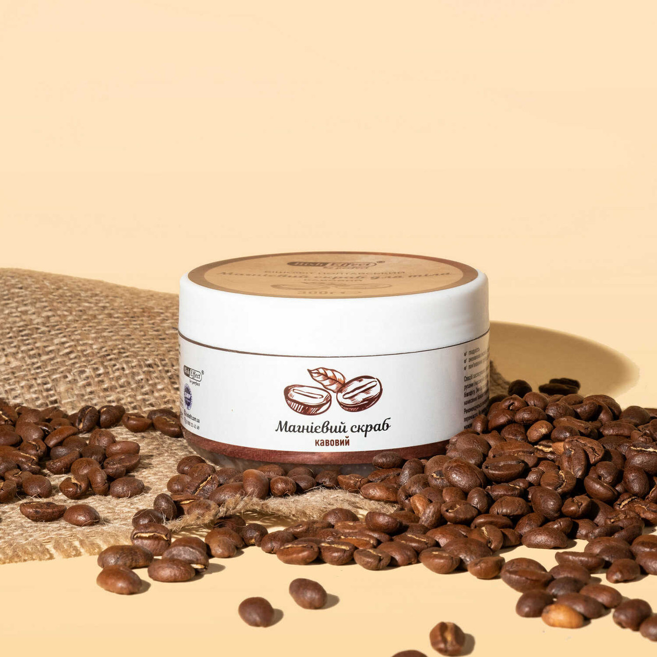- Склад (INCI): хлорид магнію, екстракт зерен кави (Coffea Arabica), порошок абрикосової кісточки, вода, гліцерин, ксантанова камедь, кокамідопропілбетаїн, віддушка;