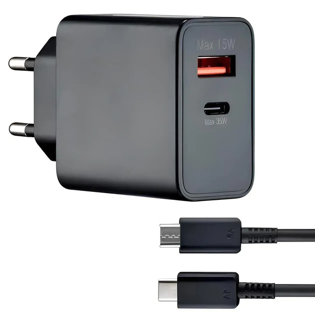 Потужний блок для зарядки 35W з двома виходами — USB-C і USB-A — це універсальний зарядний пристрій для телефону, який підтримує швидку зарядку одразу двох пристроїв. Він забезпечує стабільну та швидку подачу енергії, що дозволяє за лічені хвилини поповнити заряд смартфона, планшета, навушників або інших гаджетів. Завдяки сучасним технологіям захисту, ви можете не хвилюватися за перегрів або стрибки напруги.